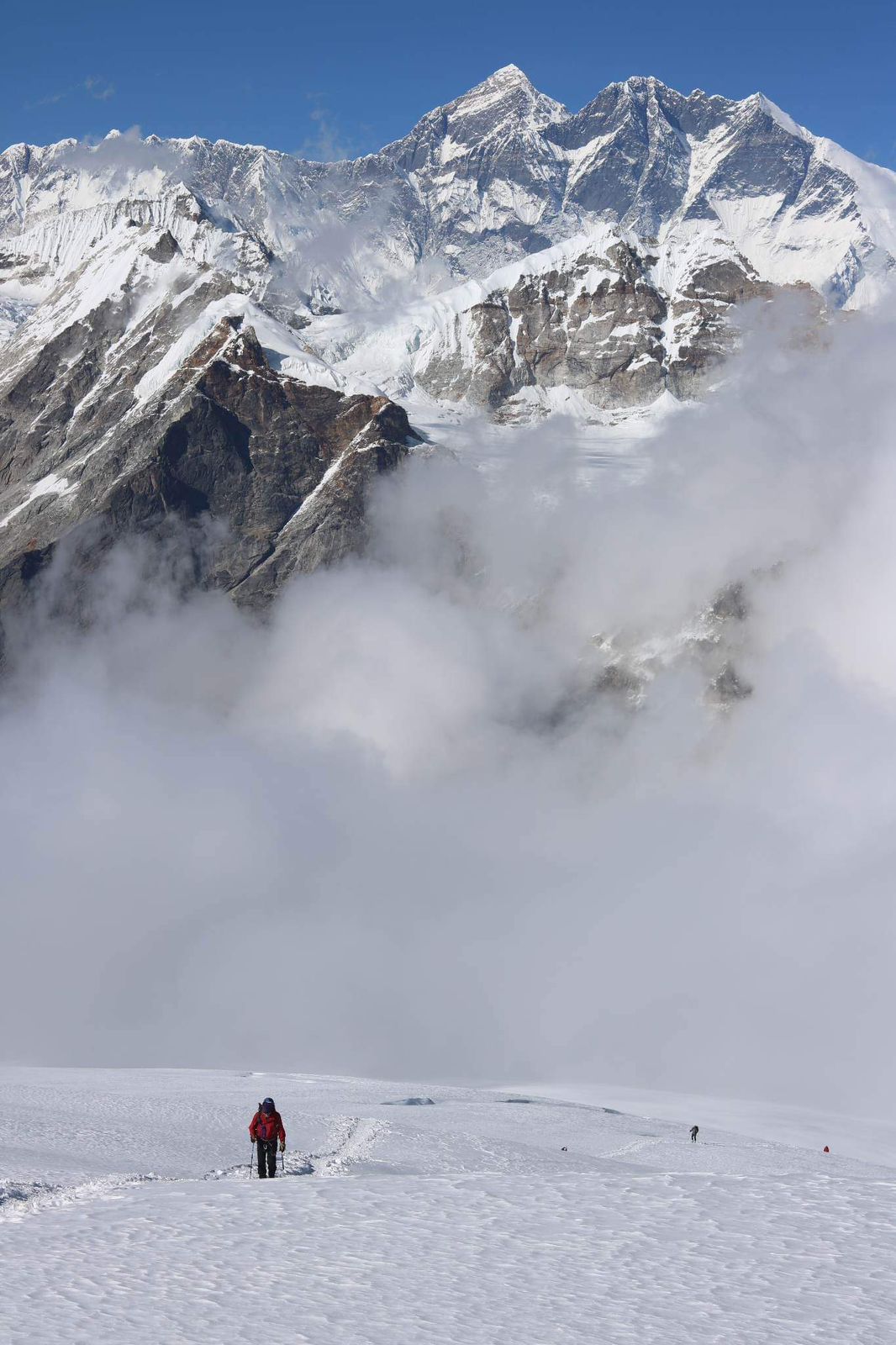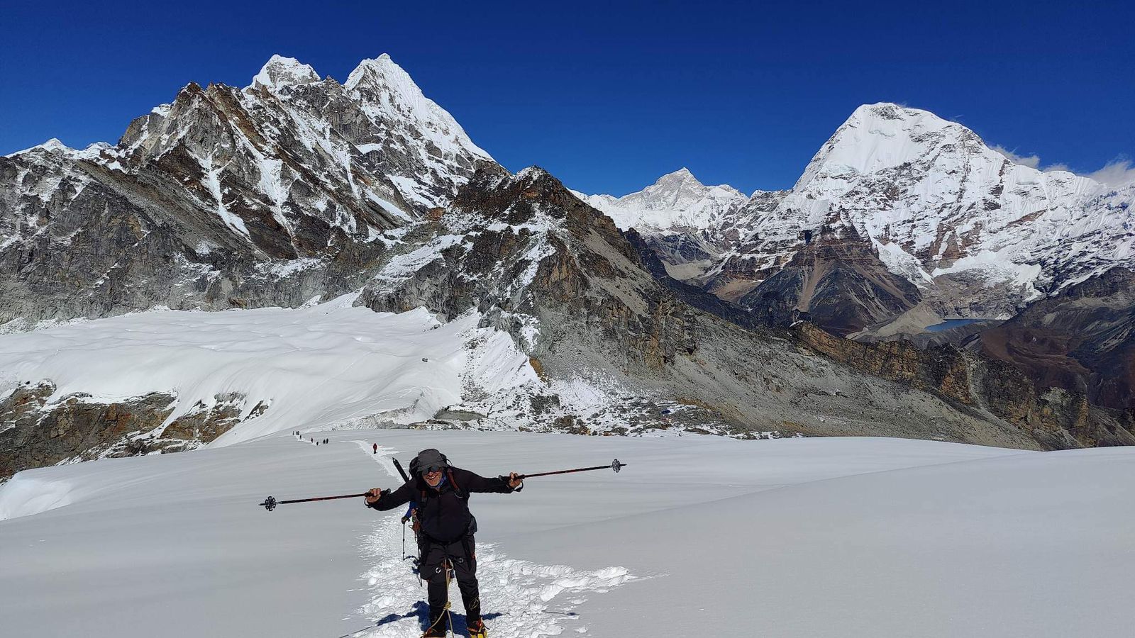 This is a really important day for the expediton. We wake up around 2 in the morning for breakfast. It’s going to be very cold in the beginning but soon we warm up as we continue up the glacier and onto a peculiar ridge. The first rays of the sun hit the big peaks in an amazing red glow. The route is still non-technical as we slowly climb higher into the ever-thinning air. The slope steepens for a section behind the ridge and the summit comes back into view. At the foot of the final steep summit cone, we may use a fixed rope if the climbing leader believes it’s required. The summit is only a few meters away. From the summit, we take in spectacular views of the mighty Himalayas including Mt. Everest (8,848m), Cho-Oyu (8,210m), Lhotse (8,516m), Makalu (8,463m), Kangchenjunga (8,586m), Nuptse (7,855m), Chamlang (7,319m), Baruntse (7,129m) and others. Later, we retrace our steps back to the high camp where we rest for a while before descending to Khare. Overnight in Khare. Includes: Breakfast, Pack-Lunch, Dinner and Accommodation in KhareDay 14